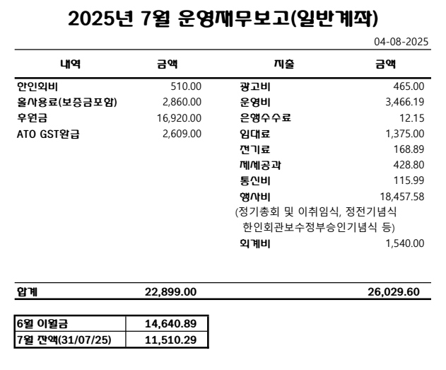 Account Name: Australian Korean Association of Sydney & NSW Incorporated